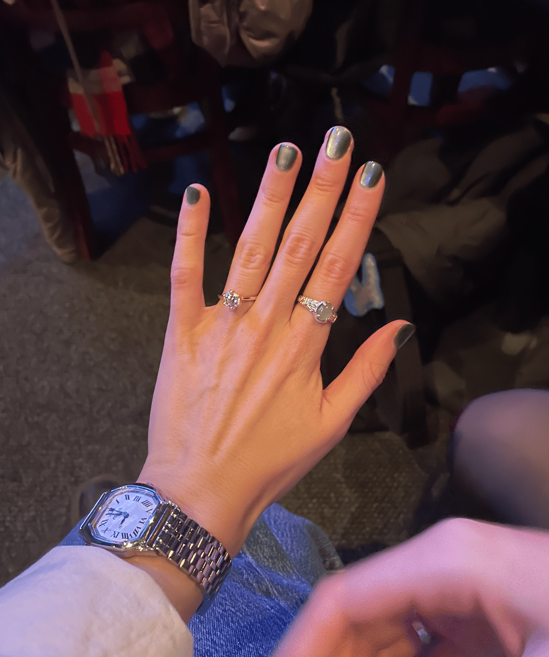 i tried on my friends engagement ring as a joke but this is a good picture of my watch!